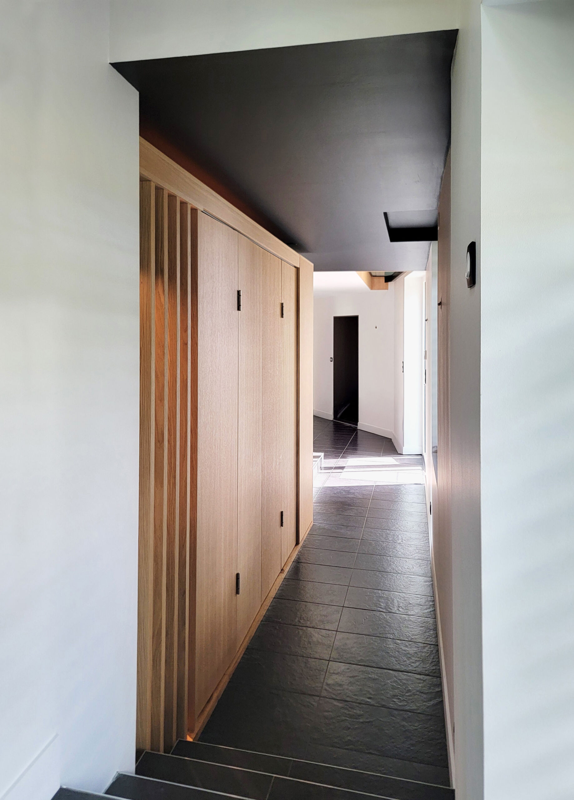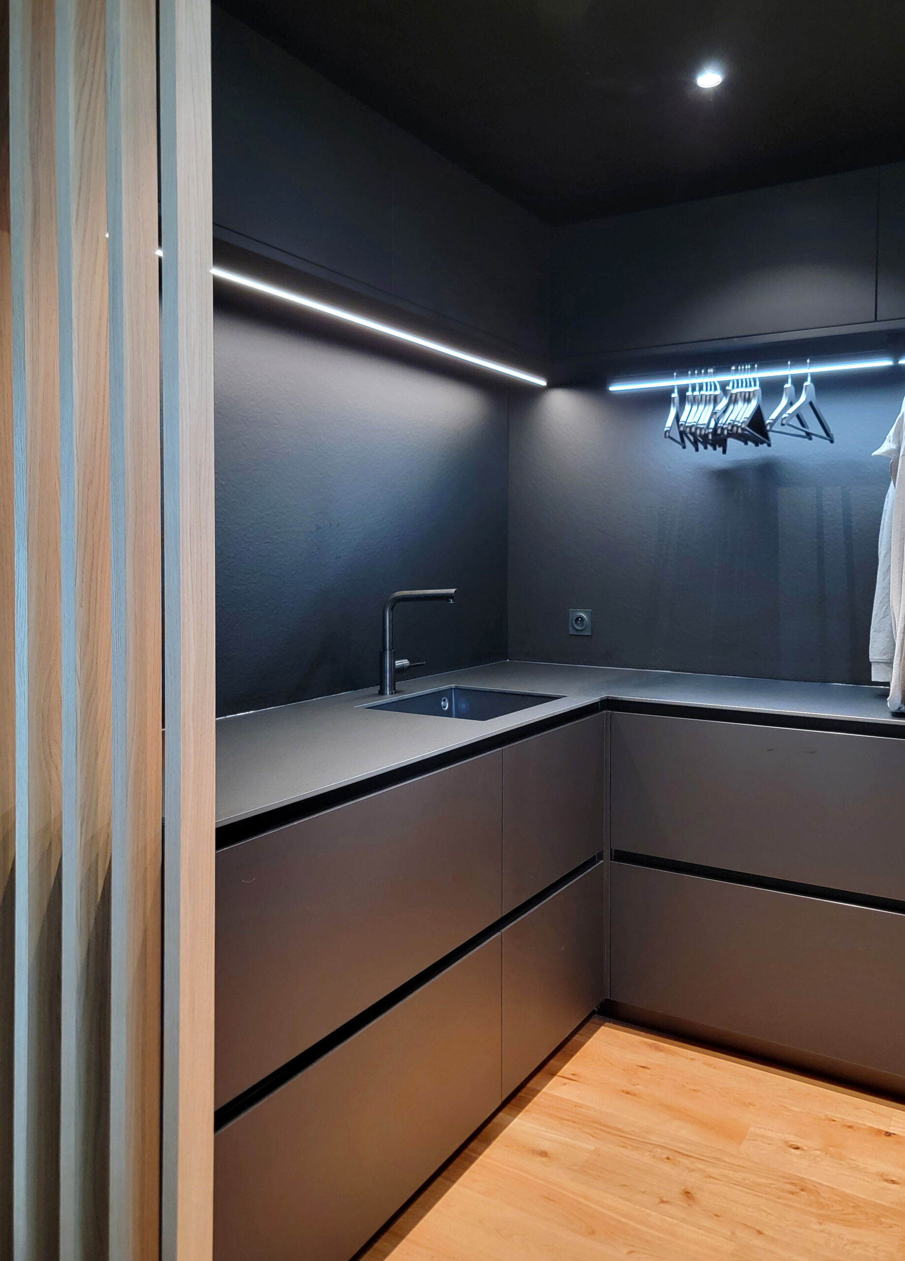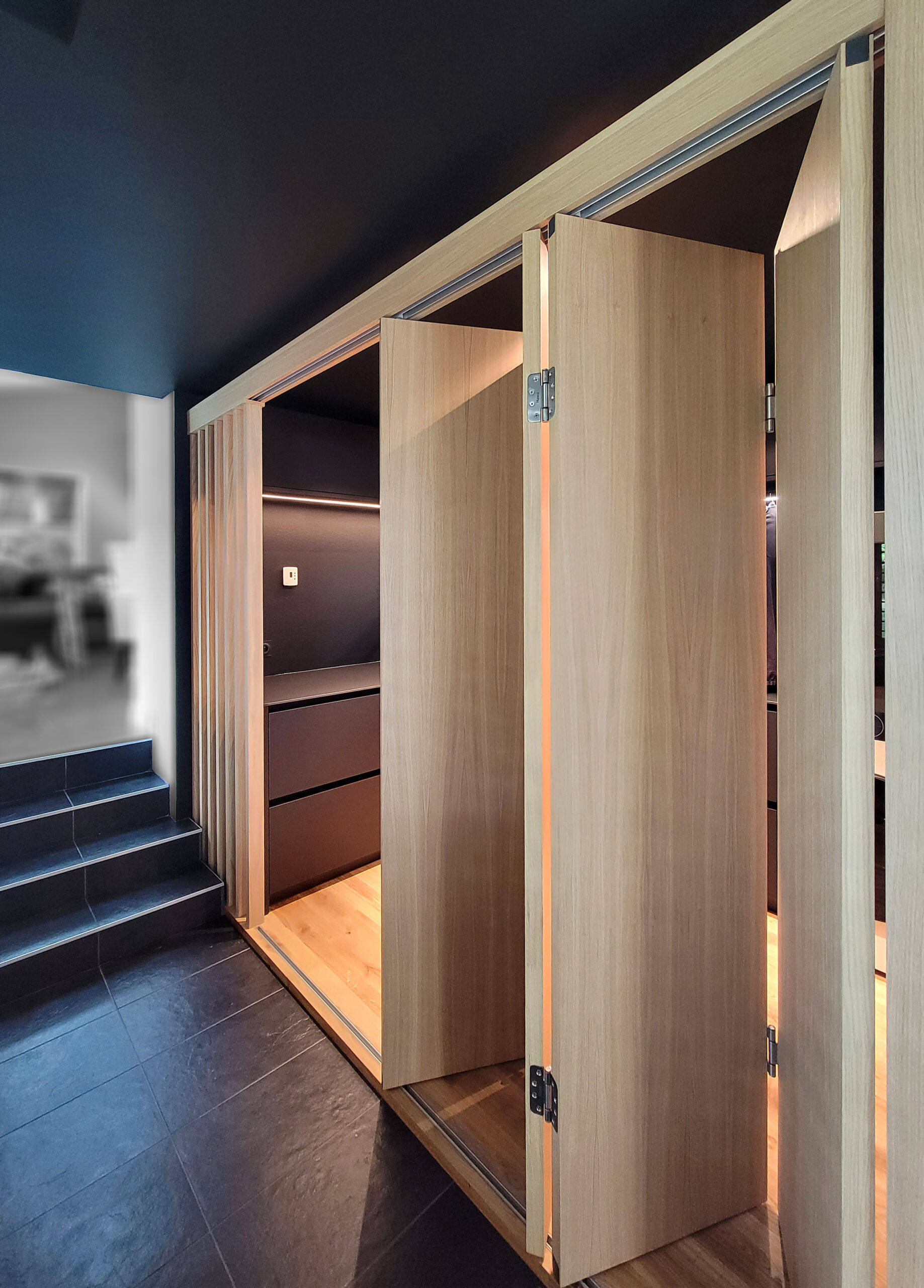 Réalisation d’une buanderie sur-mesure, astucieusement cachée derrière des portes pliantes !